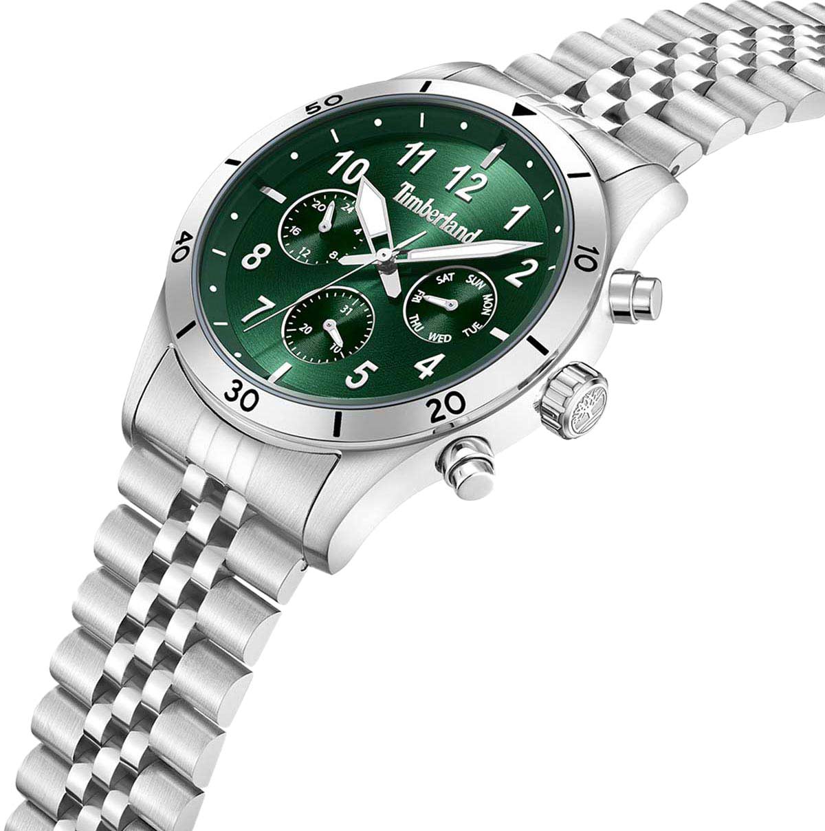 Американские мужские часы Timberland Ashmont TDWGK0054702 имеют кварцевый механизм с высокой точностью. Класс водозащиты: 50 метров, позволит защитить корпус от случайных брызг или капель дождя. Корпус часов изготовлен из стали. Прочное минеральное стеклоМинеральное стеклоМинеральное стекло представляет собой искусственно выращенный минерал кварца. Такое стекло отличается особой устойчивостью к повреждениям и царапинам. Уступает по некоторым качествам сапфировому стеклу.. Стрелки c люминесцентным покрытиемЛюминесцентное покрытиеПозволяет считывать показания времени в темноте. Производители наносят на стрелки, часовые индексы, безель или поверхность циферблата светонакопительный состав, дающий холодное свечение.. Циферблат выполнен по технологии Sunray (солнечные лучи), метки в виде арабских цифр и штрихов, время в 24-х часовом формате, число и день недели вынесены на отдельные циферблаты.
