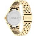 Часы Timex TW2V31800 из коллекции Waterbury Legacy — это изысканный женский аксессуар, сочетающий классический дизайн и современные технологии. Корпус диаметром 33 мм и браслет выполнены из нержавеющей стали с золотистым PVD-покрытиемPVDУльтратонкое покрытие наносится в технике вакуумного напыления, сочетает в себе нитрид титана особой прочности со слоем золота или оксида хрома. Несёт в себе декоративную или защитную функцию., что придаёт часам элегантный вид. Золотистый циферблат с аналоговой индикацией и стрелками, покрытыми люминесцентным составомЛюминесцентное покрытиеПозволяет считывать показания времени в темноте. Производители наносят на стрелки, часовые индексы, безель или поверхность циферблата светонакопительный состав, дающий холодное свечение., защищён минеральным стекломМинеральное стеклоМинеральное стекло представляет собой искусственно выращенный минерал кварца. Такое стекло отличается особой устойчивостью к повреждениям и царапинам. Уступает по некоторым качествам сапфировому стеклу., устойчивым к царапинам.