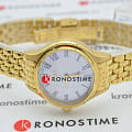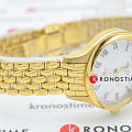 На заводной головке расположился утончённый кабашон, придающий модели женственный облик. Дополнительное очарование достигается благодаря перламутровому циферблату, плавным контурам, вогнутому безелюБезельВнешний ободок, закрепляющий стекло. В спортивных часах так называется поворотное кольцо с делениями на циферблате, выполняет роль таймера – замеряет отрезки времени на шкале. Неподвижный безель – элемент декора. Однонаправленно вращающийся безель на дайверских часах позволяет фиксировать моменты погружения и выныривания на поверхность.. Высокоточный кварцевый механизм ETA 980.153. Золотистое PVD-покрытиеPVDУльтратонкое покрытие наносится в технике вакуумного напыления, сочетает в себе нитрид титана особой прочности со слоем золота или оксида хрома. Несёт в себе декоративную или защитную функцию.. Стальной браслет с ювелирной отделкой. Отдельный мини-счётчик секунд. Сапфировое стекло отличается устойчивостью к царапинам.. Функция EOLEOLПредставляет собой систему, уведомляющую владельца часов о необходимости замены элемента питания. За 2 недели до полного разряда батарейки секундная стрелка перестаёт ходить чётко и начинает перепрыгивать на 3-4 деления.. Габариты: 24,4 x 27,2 x 7,7 мм.