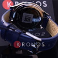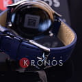 Оригинальная модель с синим кожаным ремешком имеет в комплекте дополнительный сменный вариант в нежно-розовом цвете. Вы сможете выбирать оттенок в зависимости от стиля и настроения, создаётся впечатление, будто вы обладаете двумя разными аксессуарами. Часы работают за счёт кварцевого калибра ETA F06.111. Сапфировое стекло противостоит появлению царапин и отметин. Окошко даты на позиции 3 часов. Функция EOLEOLПредставляет собой систему, уведомляющую владельца часов о необходимости замены элемента питания. За 2 недели до полного разряда батарейки секундная стрелка перестаёт ходить чётко и начинает перепрыгивать на 3-4 деления.. Габариты: 38 x 38 x 7,1 мм.