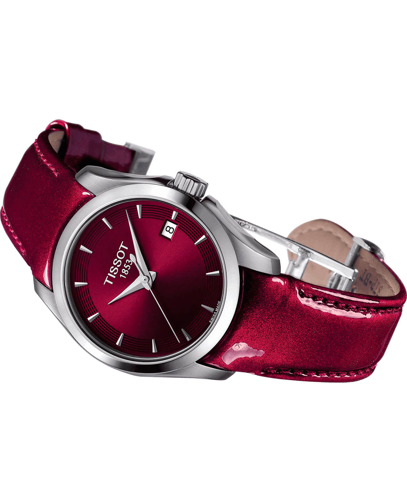 Сочный бордовый оттенок с вишнёвыми нотками сразу бросается в глаза, женские наручные часы из коллекции Tissot Couturier сделают вас королевой вечера.