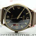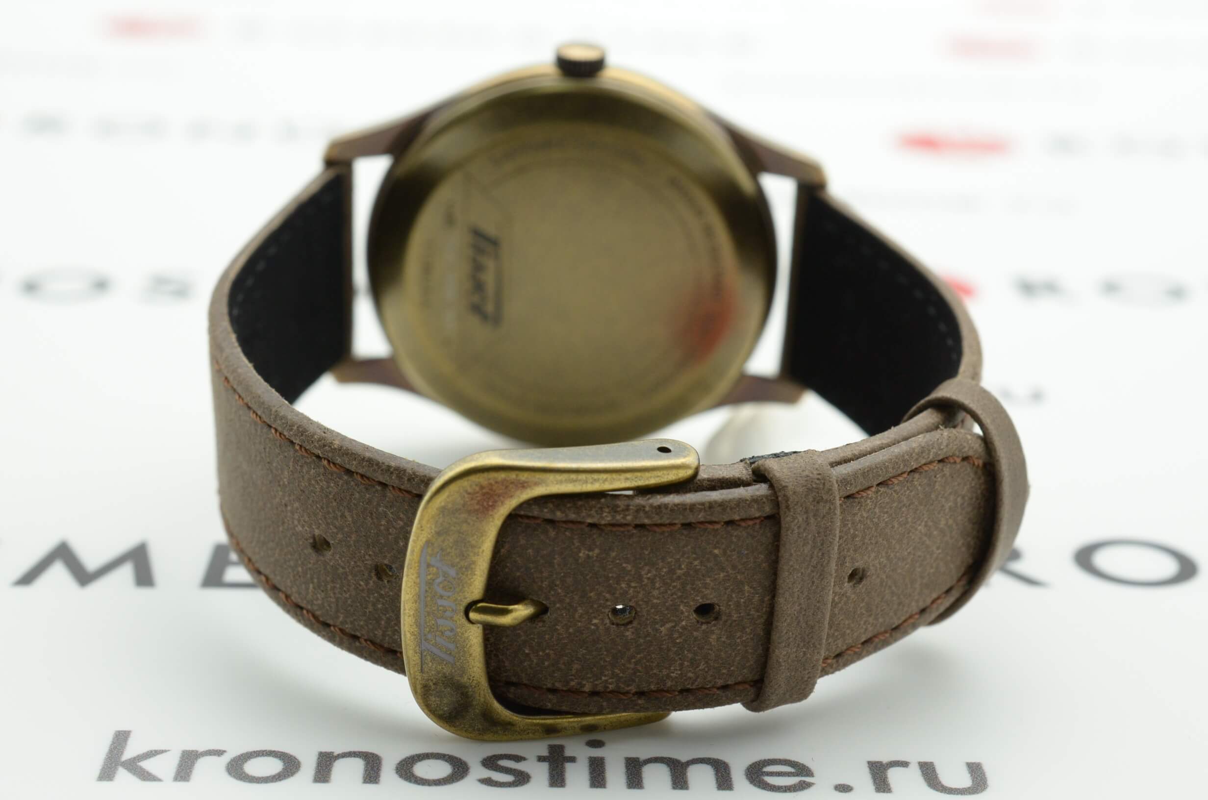 Наручные часы представляют собой современные технологии в сочетании с винтажным дизайном, во внешнем облике угадываются черты моделей 1960-х годов. Лаконичный чёрный циферблат имеет золотистые стрелки, цифры и метки, что весьма гармонично смотрится. Корпус имеет состаренное золотистое PVD-покрытиеPVDУльтратонкое покрытие наносится в технике вакуумного напыления, сочетает в себе нитрид титана особой прочности со слоем золота или оксида хрома. Несёт в себе декоративную или защитную функцию.. Кварцевый механизм ETA F06.111. Ремешок из тиснёной натуральной кожи. Сапфировое стекло. Функция EOLEOLПредставляет собой систему, уведомляющую владельца часов о необходимости замены элемента питания. За 2 недели до полного разряда батарейки секундная стрелка перестаёт ходить чётко и начинает перепрыгивать на 3-4 деления., отображение текущего числа. Габариты: 40 x 40 x 10,7 мм.