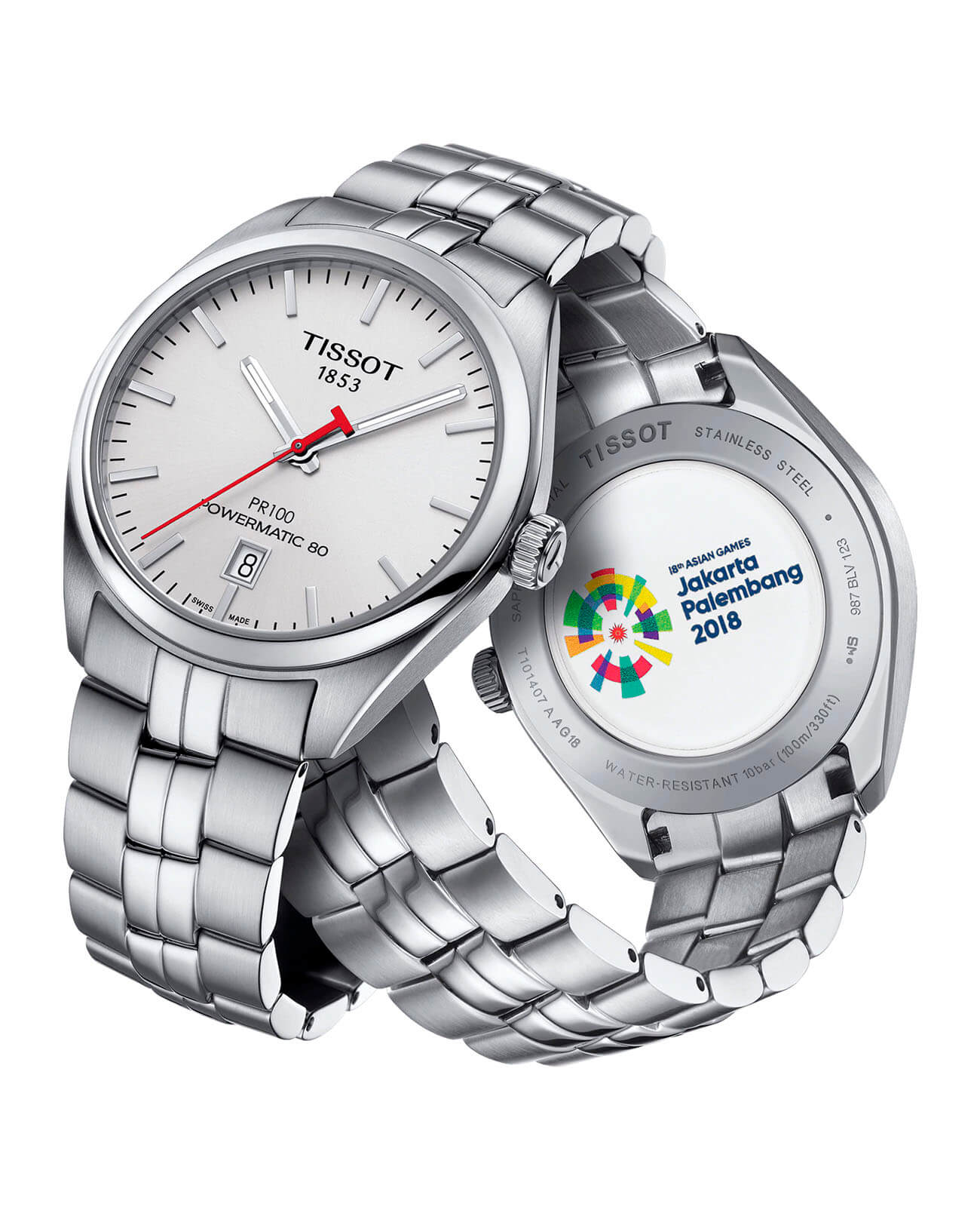 Наручные часы отражают спортивный посыл Азиатских игр, представляющих собой состязание атлетов азиатских стран. Задняя крышка декорирована логотипом соревнований с надписью, нанесёнными с помощью метода шелкографии. Динамичности добавляет и красная секундная стрелка, наделяя классический циферблат спортивным стилем. Часы с автоматической системой завода оснащены калибром ETA Powermatic 80Powermatic 80Эксклюзивный калибр от швейцарской компании ETA с увеличенным запасом хода до 80 часов за счёт удлинённой заводной пружины. Характеризуется улучшенной системой спуска со сниженным трением., резерв хода составляет 80 часов. Модель сделана из высококачественной хирургической стали 316L. Сапфировое стекло устойчиво к образованию царапин. Люминесцентная подсветкаЛюминесцентное покрытиеПозволяет считывать показания времени в темноте. Производители наносят на стрелки, часовые индексы, безель или поверхность циферблата светонакопительный состав, дающий холодное свечение.. Водостойкость 10 бар. Апертура даты. Габариты: 39 x 39 x 10,4 мм.