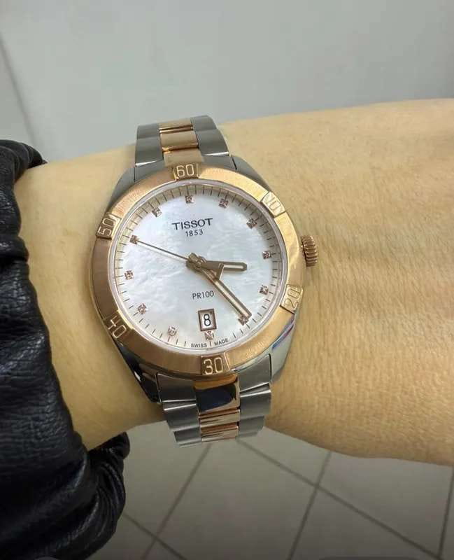 Женские наручные часы PR 100 Sport Chic были задуманы как повседневный аксессуар, но благодаря своему роскошному дизайну они прекрасно сочетаются и с вечерними нарядами. Циферблат украшен бриллиантами цвета Top Wesselton, добытыми без участия в конфликтах. Часы заключены в корпус из хирургической стали с золотистым PVD-покрытиемPVDУльтратонкое покрытие наносится в технике вакуумного напыления, сочетает в себе нитрид титана особой прочности со слоем золота или оксида хрома. Несёт в себе декоративную или защитную функцию., которое обеспечивает высокую износостойкость. В них установлен швейцарский кварцевый механизм ETA 955.412, защищённый с надёжным сапфировым стекломСапфировое стеклоПрочный и надёжный материал из кристалла сапфира синтетического происхождения, характеризующийся особой твёрдостью и устойчивостью к царапинам и повреждениям.. Водонепроницаемость до 100 метров, а среди функций есть индикация даты и система EOL. Размеры часов составляют 36 x 36 x 9 миллиметров. Производство и сборка осуществляются в Швейцарии.