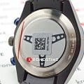 Тёмный циферблат с оригинальным узором отличается спортивным дизайном, такое исполнение актуально при любых обстоятельствах. Часы имеют голубые цветовые акценты, добавляющие динамичности. Кварцевый хронографХронографФункция позволяет измерять отрезки времени с особой точностью: часы, минуты, секунды. Верным признаком хронографа является наличие на циферблате 3 дополнительных окошек-счётчиков. с механизмом ETA G10.212 работает от батарейки, отпадает необходимость постоянного завода. Водостойкость до 10 бар. Керамический узорчатый безельБезельВнешний ободок, закрепляющий стекло. В спортивных часах так называется поворотное кольцо с делениями на циферблате, выполняет роль таймера – замеряет отрезки времени на шкале. Неподвижный безель – элемент декора. Однонаправленно вращающийся безель на дайверских часах позволяет фиксировать моменты погружения и выныривания на поверхность.. Сапфировое стекло с антибликовым покрытием. Шкала тахиметраТахиметрРазмеченная шкала, располагается на ободке или безеле часов. Тахиметр позволяет рассчитать скорость на определённом участке пути, расстояние измеряется в километрах или милях.. Корпус из нержавеющей стали 316L. Люминесцентная подсветкаЛюминесцентное покрытиеПозволяет считывать показания времени в темноте. Производители наносят на стрелки, часовые индексы, безель или поверхность циферблата светонакопительный состав, дающий холодное свечение.. Каучуковый ремешок. . Секундомер, индикация даты. Габариты: 42 x 42 x 12,1 мм.