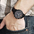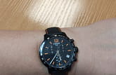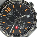 Чёрный фактурный циферблат никогда не утратит актуальности, брендовый аксессуар стильно смотрится на запястье и позволит вам всегда ощущать себя на высоте. В качестве материала для изготовления корпуса была выбрана нержавеющая сталь 316L с PDV покрытием. Кварцевый механизм ETA G10.211 с высокой точностью хода. Стекло из сапфира. Водонепроницаемость до 10 бар. Люминесцентная подсветкаЛюминесцентное покрытиеПозволяет считывать показания времени в темноте. Производители наносят на стрелки, часовые индексы, безель или поверхность циферблата светонакопительный состав, дающий холодное свечение.. Кожаный ремешок с оранжевой прострочкой. ХронографХронографФункция позволяет измерять отрезки времени с особой точностью: часы, минуты, секунды. Верным признаком хронографа является наличие на циферблате 3 дополнительных окошек-счётчиков., секундомер, индикация текущего числа, тахиметрТахиметрРазмеченная шкала, располагается на ободке или безеле часов. Тахиметр позволяет рассчитать скорость на определённом участке пути, расстояние измеряется в километрах или милях.. Габариты: 42 x 42 x 10,7 мм.
