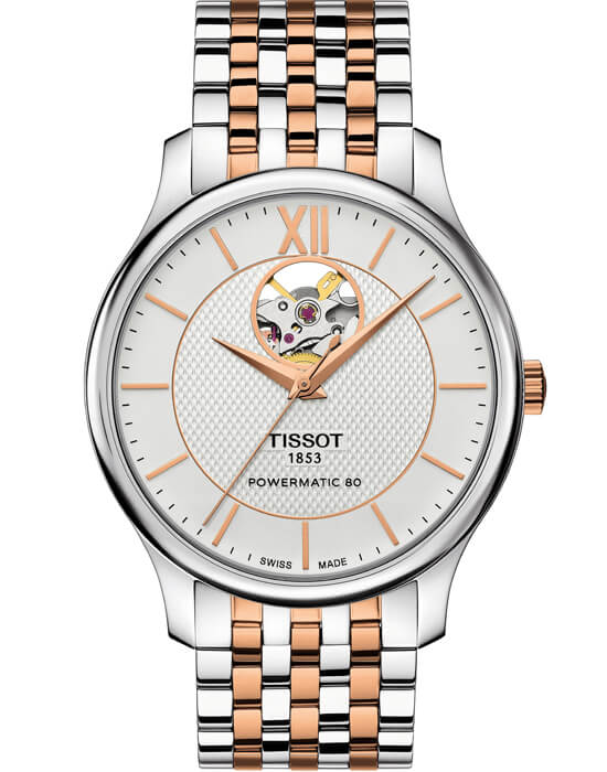 Швейцарские мужские механические часы Tissot Tradition Powermatic 80 Open Heart T063.907.22.038.01