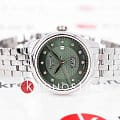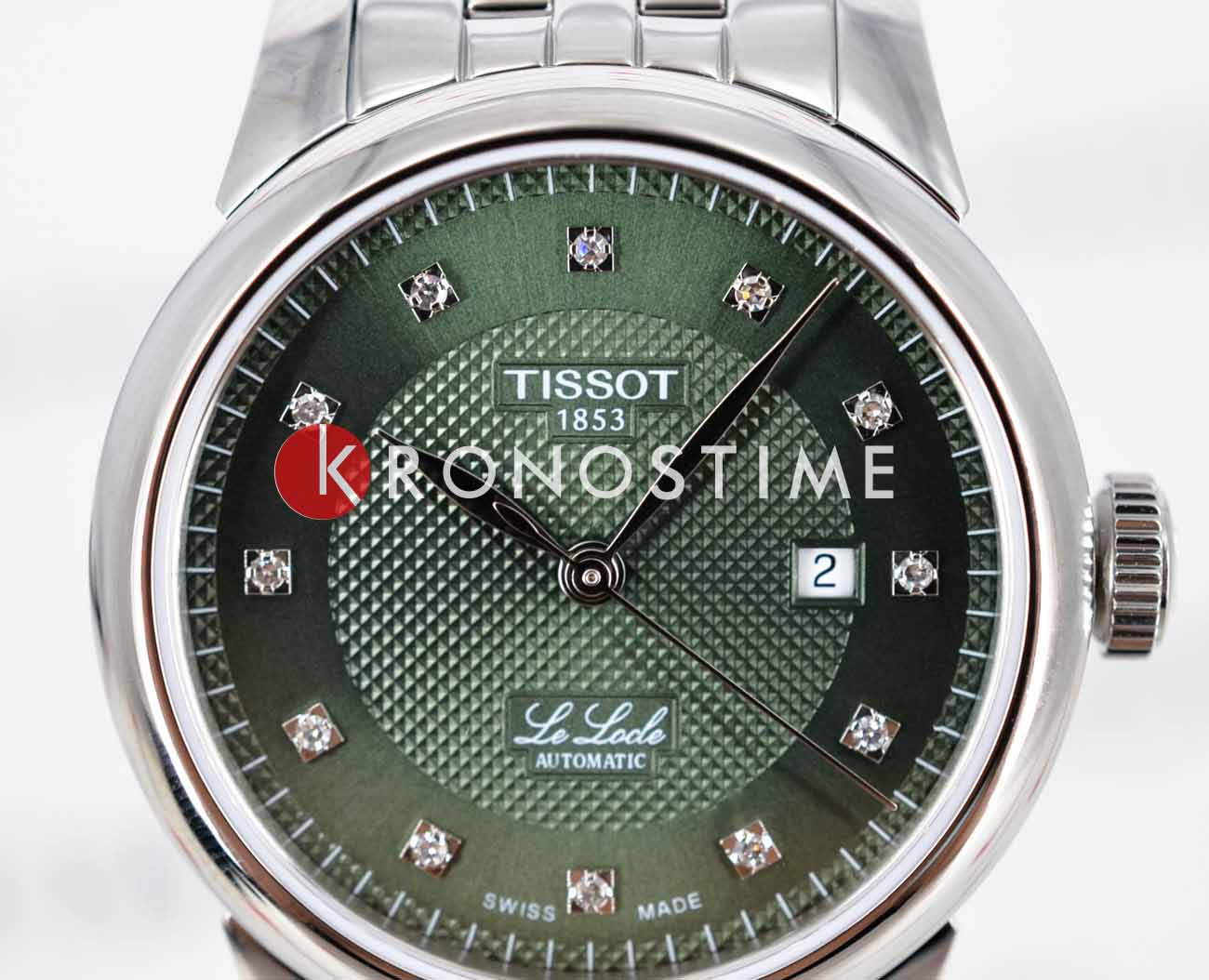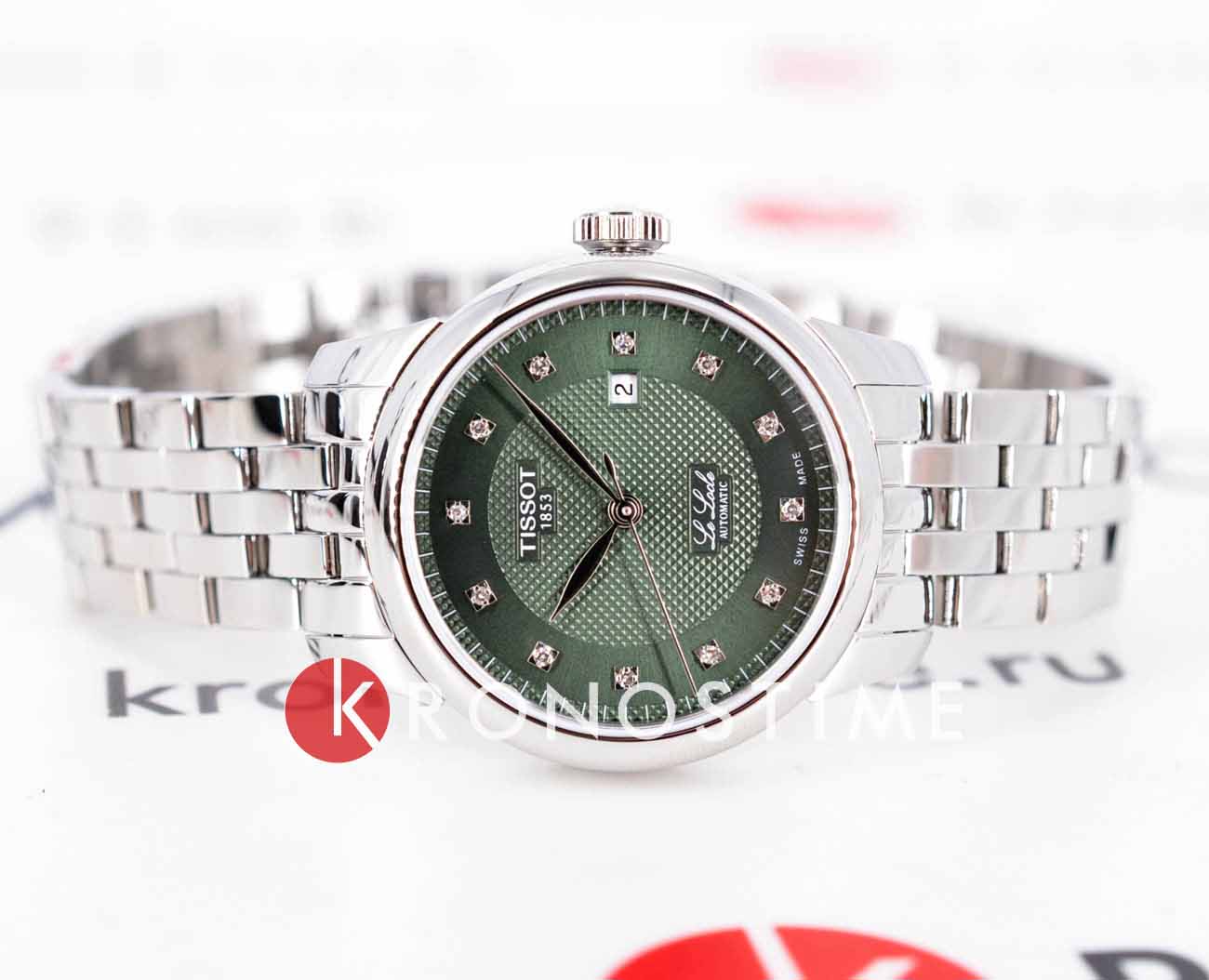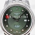 Женские наручные часы Tissot Le Locle Automatic Lady (модель T006.207.11.096.00) – утончённое сочетание элегантности и технологичности. Корпус диаметром 29 мм выполнен из нержавеющей стали 316L и оснащён прозрачной задней крышкой, позволяющей наблюдать за работой швейцарского механизма. Зелёный циферблат с узором "clous de Paris" и восемью бриллиантами подчёркивает изысканность модели. Он надёжно защищён сапфировым стекломСапфировое стеклоПрочный и надёжный материал из кристалла сапфира синтетического происхождения, характеризующийся особой твёрдостью и устойчивостью к царапинам и повреждениям. с антибликовым покрытиемАнтибликовое покрытиеСлой оксида металла в 0,13-0,3 микрон, благодаря которому стекло часов не бликует и не отражает свет. Антибликовое покрытие уменьшает отражение света в 10 раз, обеспечивая отличную читаемость показателей циферблата., обеспечивающим идеальную читаемость. Механизм Powermatic 80Powermatic 80Эксклюзивный калибр от швейцарской компании ETA с увеличенным запасом хода до 80 часов за счёт удлинённой заводной пружины. Характеризуется улучшенной системой спуска со сниженным трением. с запасом хода 48 часов оснащён инновационной пружиной Nivachron™Nivachron™Специально разработанный инновационный сплав Nivachron™ повышает устойчивость часов к воздействию магнитных полей., повышающей устойчивость к магнитным полям и ударам. Браслет из нержавеющей стали дополнен удобной застёжкой 'бабочка'Застёжка "бабочка"Такой вид застёжки дополняется предохранителями, помогающими избежать случайного раскрытия браслета. Обладают изящным исполнением. , обеспечивающей комфортное ношение. Водонепроницаемость 3 бара (30 метров) защитит от случайных брызг. Идеальный аксессуар для женщин, ценящих сочетание классики и передовых технологий.