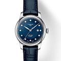 Tissot Le Locle T006.207.16.046.00 — изящные женские часы, воплощающие классическое швейцарское часовое искусство. Корпус из полированной нержавеющей стали оформлен в элегантном минималистичном стиле, а глубокий синий циферблат с изящным гильоше и часовыми метками, украшенными кристаллами, придаёт модели благородное сияние. Тонкие стрелки и аккуратное окошко даты подчёркивают утончённость композиции. Надёжный автоматический калибр обеспечивает до 48 часов автономного хода, демонстрируя высочайшую точность и мастерство Tissot. Прочное сапфировое стеклоСапфировое стеклоПрочный и надёжный материал из кристалла сапфира синтетического происхождения, характеризующийся особой твёрдостью и устойчивостью к царапинам и повреждениям. защищает циферблат от царапин, а ремешок из натуральной кожи на раскладной застёжкеРаскладная застёжкаТакой тип застёжки используется только на браслетах из металла. Она никогда не раскрывается полностью, происходит разделение на 2 и более частей. Раскладывающая застёжка снизит вероятность потери часов к минимуму. дарит комфорт и лёгкость при ношении. Tissot Le Locle — символ вечной элегантности и истинной швейцарской традиции.