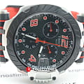 Эпатажные мужские часы из коллекции T-Race отражают динамику мотогоночных соревнований и чемпионский характер. Оригинальный аксессуар выполнен в спортивном стиле, характерно наличие крупных деталей, яркая расцветка, отсылка к деталям гоночных мотоциклов. Задняя крышка корпуса сделана в виде колеса, безельБезельВнешний ободок, закрепляющий стекло. В спортивных часах так называется поворотное кольцо с делениями на циферблате, выполняет роль таймера – замеряет отрезки времени на шкале. Неподвижный безель – элемент декора. Однонаправленно вращающийся безель на дайверских часах позволяет фиксировать моменты погружения и выныривания на поверхность. напоминает тормозную колодку. Наручные часы оснащены кварцевым механизмом швейцарского производства ETA G10.212. ХронографХронографФункция позволяет измерять отрезки времени с особой точностью: часы, минуты, секунды. Верным признаком хронографа является наличие на циферблате 3 дополнительных окошек-счётчиков. позволяет измерять показатели с особой точностью. Чёрное PVD-покрытиеPVDУльтратонкое покрытие наносится в технике вакуумного напыления, сочетает в себе нитрид титана особой прочности со слоем золота или оксида хрома. Несёт в себе декоративную или защитную функцию. корпуса. Сапфировое стекло. Водостойкость при давлении 10 бар. Секундомер, индикация даты. Габариты: 43 x 46,7 x 12,7 мм. Производство и сборка: Швейцария.