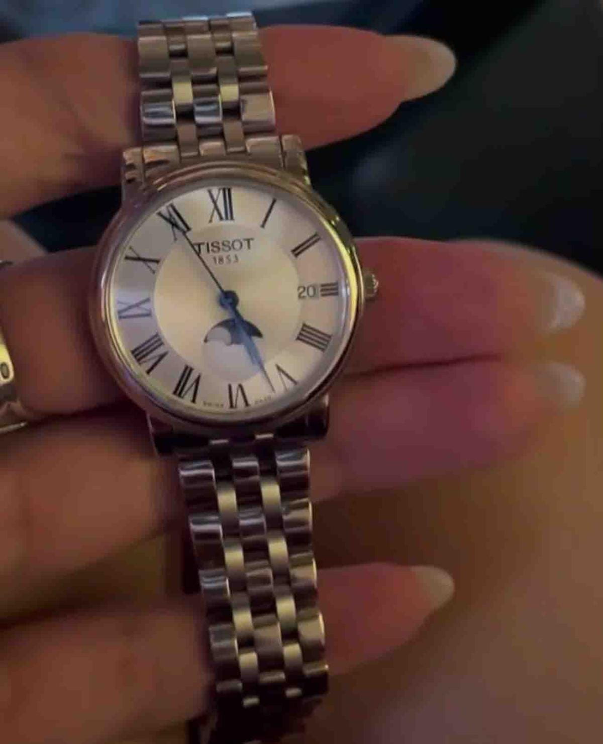 Женские швейцарские часы Tissot Carson Premium Lady Moonphase T122.223.11.033.00, кварцевый высокоточный механизм F05.841 с индикатором заряда батареи EOL.