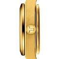 Мужские кварцевые часы Tissot PRX 25 мм T1370103302100 — это стильный аксессуар, вдохновлённый элегантностью 70-х годов. Модель выполнена в тонкой форме из нержавеющей стали 316L с PVD-покрытиемPVDУльтратонкое покрытие наносится в технике вакуумного напыления, сочетает в себе нитрид титана особой прочности со слоем золота или оксида хрома. Несёт в себе декоративную или защитную функцию. цвета жёлтого золота, что придаёт ей благородный внешний вид и устойчивость к царапинам. Циферблат шампанского цвета дополнен индексами, а его поверхность защищена сапфировым стекломСапфировое стеклоПрочный и надёжный материал из кристалла сапфира синтетического происхождения, характеризующийся особой твёрдостью и устойчивостью к царапинам и повреждениям. с антибликовым покрытиемАнтибликовое покрытиеСлой оксида металла в 0,13-0,3 микрон, благодаря которому стекло часов не бликует и не отражает свет. Антибликовое покрытие уменьшает отражение света в 10 раз, обеспечивая отличную читаемость показателей циферблата., устойчивым к повреждениям. Стрелки и метки имеют люминесцентное покрытиеЛюминесцентное покрытиеПозволяет считывать показания времени в темноте. Производители наносят на стрелки, часовые индексы, безель или поверхность циферблата светонакопительный состав, дающий холодное свечение. Super-LumiNova®, обеспечивающее отличную читаемость даже в условиях слабого освещения. Часы оснащены солнечным кварцевым механизмом швейцарского производства, который обеспечивает точную работу и минимальное обслуживание. Аккумулятор Renata 364 гарантирует длительную работу без подзарядки. Браслет из нержавеющей стали с покрытием цвета жёлтого золота оснащён Застёжка "бабочка"Застёжка "бабочка"Такой вид застёжки дополняется предохранителями, помогающими избежать случайного раскрытия браслета. Обладают изящным исполнением. , обеспечивающей комфорт и надёжную фиксацию на запястье. Ремешок является быстросменным, что позволяет легко менять его по желанию. Водонепроницаемость позволяет использовать модель при плавании и других водных активностях без глубокого погружения. Гарантия 2 года подтверждает качество и долговечность изделия. Эти часы станут универсальным аксессуаром для тех, кто ценит сочетание стиля, функциональности и швейцарского мастерства — идеальный выбор для повседневной носки и активного образа жизни.