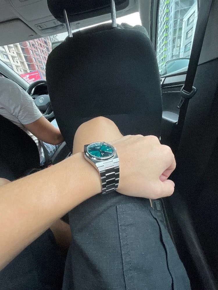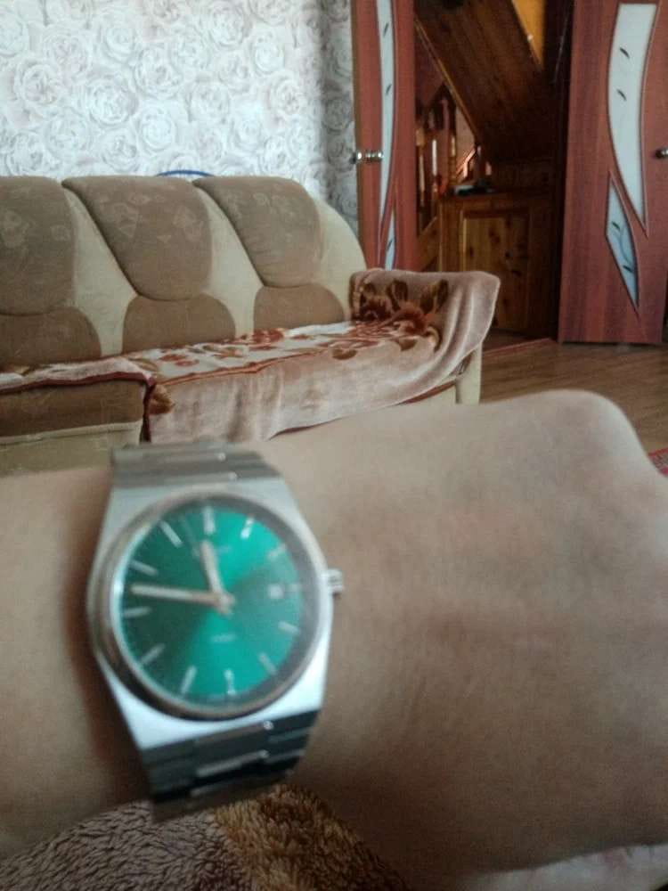 Классный переливающийся глубоко-зелёный циферблат. Одна из причин, почему взял эти часы, это офигенно переливающийся ремешок на свету, очень сильно завораживает! Дизайн прост и сложен одновременно (субъективно)