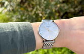 Кварцевый механизм с высокой точностью. Сапфировое стеклоСапфировое стеклоПрочный и надёжный материал из кристалла сапфира синтетического происхождения, характеризующийся особой твёрдостью и устойчивостью к царапинам и повреждениям. устойчивое к появлению царапин, обладающее высокой прозрачностью. Класс водозащиты: 50 метров, позволит защитить корпус от случайных брызг или капель дождя. Корпус часов изготовлен из нержавеющей стали. Браслет с застёжкой «бабочка» с кнопкамиЗастёжка "бабочка"Такой вид застёжки дополняется предохранителями, помогающими избежать случайного раскрытия браслета. Обладают изящным исполнением. .