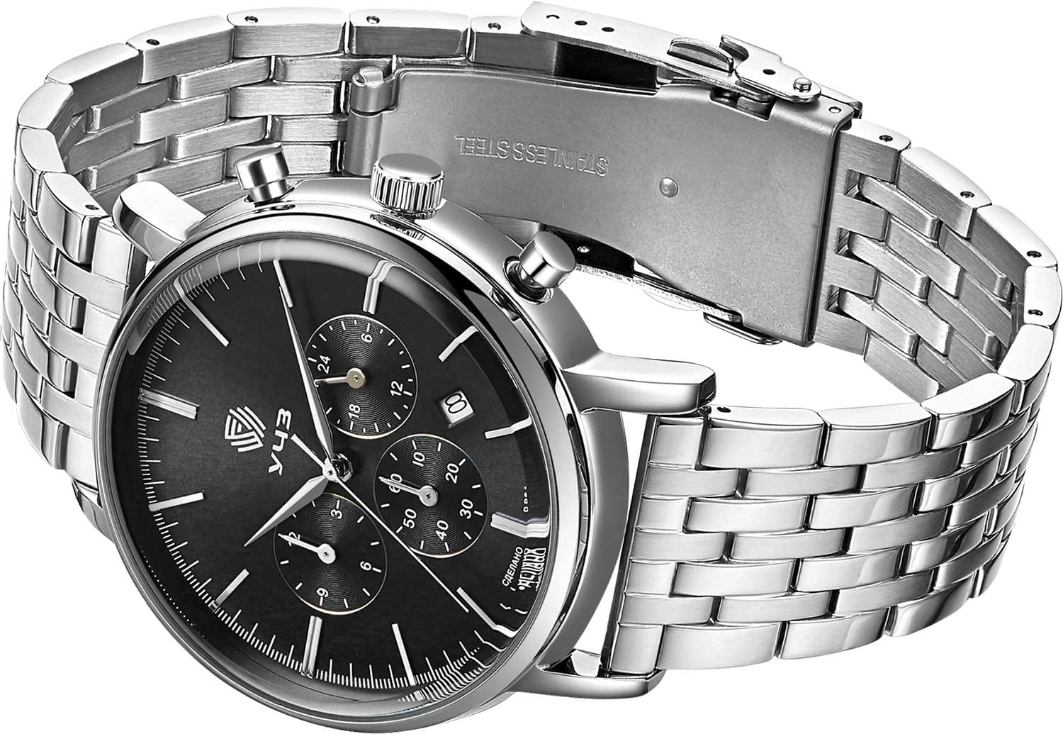 УЧЗ Spectr 1526A1B2 — стильные мужские часы, сочетающие динамичный дизайн и чёткую функциональность для ежедневной носки. Корпус выполнен из нержавеющей стали серебристого цвета, размером 44 мм, поставляются со стальным браслетом на раскладной застёжкеРаскладная застёжкаТакой тип застёжки используется только на браслетах из металла. Она никогда не раскрывается полностью, происходит разделение на 2 и более частей. Раскладывающая застёжка снизит вероятность потери часов к минимуму.. Циферблат с акцентными стрелками и штрихами делает модель более практичной. Присутствует 12-ти и 24-х часовой формат времени, а также окошко даты. Минеральное стеклоМинеральное стеклоМинеральное стекло представляет собой искусственно выращенный минерал кварца. Такое стекло отличается особой устойчивостью к повреждениям и царапинам. Уступает по некоторым качествам сапфировому стеклу. закалённое для защиты от мелких повреждений, а кварцевый механизм обеспечивает высокую точность. Водозащита до 30 метров, благодаря чему корпус защищён от брызг воды и дождя. Идеальный выбор для тех, кто ценит элегантный дизайн и качество.