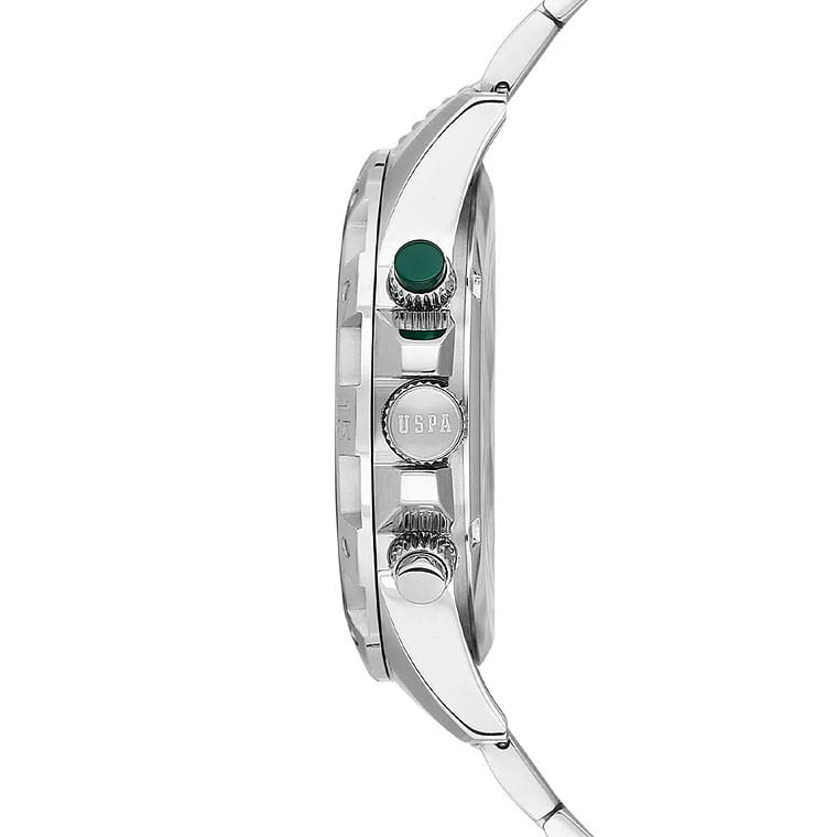 Мужские элегантные американские часы U.S. Polo Assn. Crossing USPA1077-04 обладают кварцевым механизмом с высокой точностью. Минеральное стеклоМинеральное стеклоМинеральное стекло представляет собой искусственно выращенный минерал кварца. Такое стекло отличается особой устойчивостью к повреждениям и царапинам. Уступает по некоторым качествам сапфировому стеклу. устойчивое к появлению царапин, обладающее высокой прозрачностью. Изысканный корпус изготовлен из нержавеющей стали с поворотным безелемБезельВнешний ободок, закрепляющий стекло. В спортивных часах так называется поворотное кольцо с делениями на циферблате, выполняет роль таймера – замеряет отрезки времени на шкале. Неподвижный безель – элемент декора. Однонаправленно вращающийся безель на дайверских часах позволяет фиксировать моменты погружения и выныривания на поверхность.. Стильные центральные часовая, минутная и секундная стрелки. 24-х часовой формат времени, день недели вынесены на отдельный циферблат. Часы оснащены люминесцентным покрытиемЛюминесцентное покрытиеПозволяет считывать показания времени в темноте. Производители наносят на стрелки, часовые индексы, безель или поверхность циферблата светонакопительный состав, дающий холодное свечение., обеспечивающим хорошую читаемость в темноте. Класс водозащиты: 50 метров, позволит защитить корпус от случайных брызг или капель дождя. Окошко даты находится в положении между 4 и 5 часами. Стальной браслет с раскладной застёжкойРаскладная застёжкаТакой тип застёжки используется только на браслетах из металла. Она никогда не раскрывается полностью, происходит разделение на 2 и более частей. Раскладывающая застёжка снизит вероятность потери часов к минимуму. обеспечивает комфорт и удобство в использовании, добавляя завершающий штрих к этому стильному и высокоэффективному аксессуару. Это практичный и стильный инструмент для активной повседневности, объединяющий точный механизм и удобство.