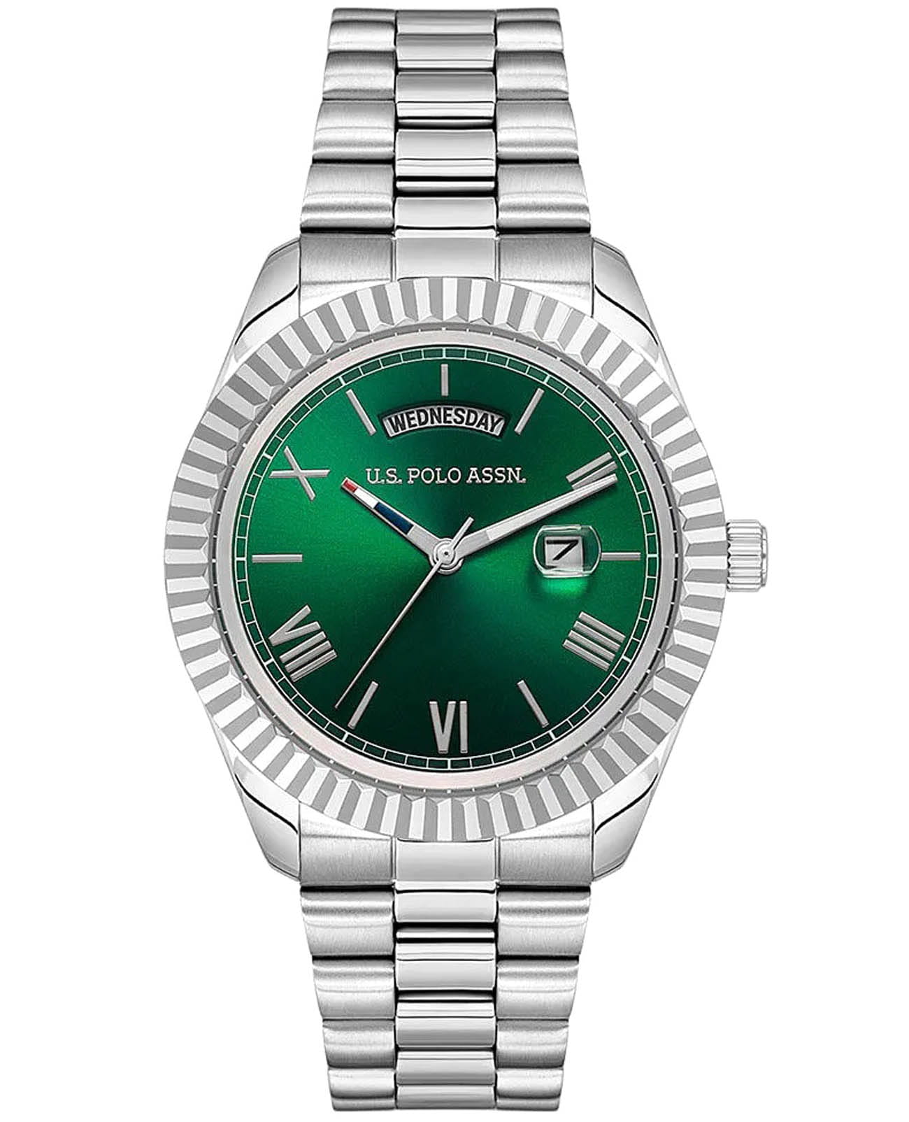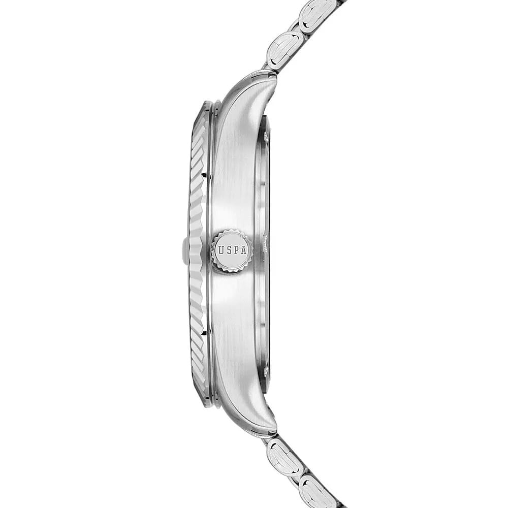 Мужские американские часы U.S. Polo Assn. Fundamental USPA1100B-04 обладают кварцевым механизмом с высокой точностью. Минеральное стеклоМинеральное стеклоМинеральное стекло представляет собой искусственно выращенный минерал кварца. Такое стекло отличается особой устойчивостью к повреждениям и царапинам. Уступает по некоторым качествам сапфировому стеклу. устойчивое к появлению царапин, обладающее высокой прозрачностью. Изысканный корпус изготовлен из нержавеющей стали, диаметром 42 мм. Лаконичные центральные часовая, минутная и секундная стрелки. Стрелки с люминесцентным покрытиемЛюминесцентное покрытиеПозволяет считывать показания времени в темноте. Производители наносят на стрелки, часовые индексы, безель или поверхность циферблата светонакопительный состав, дающий холодное свечение., обеспечивающим хорошую читаемость в темноте. Класс водозащиты: 50 метров позволит защитить корпус от случайных брызг или капель дождя. Окошко даты находится в положении 3 часа, окошко дня недели в положении 12 часов. Стальной браслет на раскладной застёжкеРаскладная застёжкаТакой тип застёжки используется только на браслетах из металла. Она никогда не раскрывается полностью, происходит разделение на 2 и более частей. Раскладывающая застёжка снизит вероятность потери часов к минимуму. обеспечивает комфорт и удобство в использовании, добавляя завершающий штрих к этому стильному и высокоэффективному аксессуару. Это практичный и стильный инструмент для активной повседневности, объединяющий точный механизм и удобство.