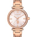 Женские часы U.S. Polo Assn Stile USPA2032-01, кварцевый механизм с высокой точностью. Минеральное стеклоМинеральное стеклоМинеральное стекло представляет собой искусственно выращенный минерал кварца. Такое стекло отличается особой устойчивостью к повреждениям и царапинам. Уступает по некоторым качествам сапфировому стеклу. устойчивое к появлению царапин, обладающее высокой прозрачностью. Корпус изготовлен из нержавеющей стали с IP-покрытиемIP-покрытиеМетод ионного напыления. Демонстрирует повышенную устойчивость к истиранию, окислению и химическим веществам. Под воздействием высокого давления и температуры около 1500°C молекулы металла надёжно соединяются с частицами корпуса часов.. БезельБезельВнешний ободок, закрепляющий стекло. В спортивных часах так называется поворотное кольцо с делениями на циферблате, выполняет роль таймера – замеряет отрезки времени на шкале. Неподвижный безель – элемент декора. Однонаправленно вращающийся безель на дайверских часах позволяет фиксировать моменты погружения и выныривания на поверхность. с IP-покрытиемIP-покрытиеМетод ионного напыления. Демонстрирует повышенную устойчивость к истиранию, окислению и химическим веществам. Под воздействием высокого давления и температуры около 1500°C молекулы металла надёжно соединяются с частицами корпуса часов. украшен кристаллами. Класс водозащиты: 50 метров, позволит защитить корпус от случайных брызг или капель дождя. Стальной браслет с IP-покрытиемIP-покрытиеМетод ионного напыления. Демонстрирует повышенную устойчивость к истиранию, окислению и химическим веществам. Под воздействием высокого давления и температуры около 1500°C молекулы металла надёжно соединяются с частицами корпуса часов. на раскладной застёжкеРаскладная застёжкаТакой тип застёжки используется только на браслетах из металла. Она никогда не раскрывается полностью, происходит разделение на 2 и более частей. Раскладывающая застёжка снизит вероятность потери часов к минимуму..