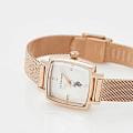 Женские наручные часы U.S. Polo Assn. Stile USPA2066-03 — это стильный и лаконичный аксессуар, выполненный в форме квадрата. Модель изготовлена из стали с PVD-покрытиемPVDУльтратонкое покрытие наносится в технике вакуумного напыления, сочетает в себе нитрид титана особой прочности со слоем золота или оксида хрома. Несёт в себе декоративную или защитную функцию. цвета розового золота, что придаёт ей благородный внешний вид и устойчивость к царапинам. Циферблат белого цвета дополнен секундной стрелкой, обеспечивающей точность отсчёта времени. Защиту циферблата обеспечивает минеральное стеклоМинеральное стеклоМинеральное стекло представляет собой искусственно выращенный минерал кварца. Такое стекло отличается особой устойчивостью к повреждениям и царапинам. Уступает по некоторым качествам сапфировому стеклу., устойчивое к мелким повреждениям. Часы оснащены кварцевым механизмом, гарантирующим точность и минимальное обслуживание. Водонепроницаемость 3 АТМ позволяет использовать часы в повседневных условиях — при мытье рук или под лёгким дождём. Браслет выполнен в технике миланской сетки из стали с покрытием розового золота и оснащён раскладным замкомРаскладной замокДанный вариант застежки используется только на часах с металлическим браслетом. Отличительная особенность такого крепления в том, что длина браслета становится универсальной и вы можете самостоятельно отрегулировать нужный вам размер – застежка просто двигается по браслету часов., обеспечивающей комфорт и уверенную фиксацию на запястье. Толщина корпуса составляет 10 мм, а его размеры — 26x26 мм, что делает часы компактными и удобными в носке. Эти часы станут универсальным аксессуаром для уверенных в себе женщин, которые ценят сочетание стиля, качества и эстетики — идеальный выбор для повседневного образа и торжественных случаев.