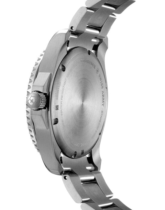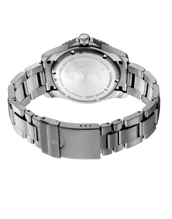 Мужские швейцарские часы с сапфировым стеклом Victorinox 241697, кварцевый механизм с высокой точностью. Сапфировое стекло устойчивое к появлению царапин, обладающее высокой прозрачностью. Класс водозащиты: 100 метров, позволит плавать, нырять и заниматься другими водными видами спорта. Корпус часов изготовлен из стали, серебристого цвета.