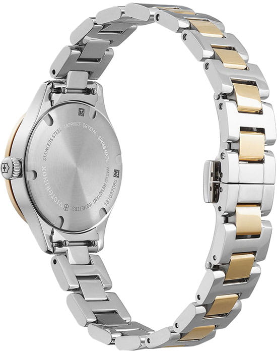 Женские швейцарские часы с сапфировым стеклом. Victorinox 241841, кварцевый механизм с высокой точностью. Сапфировое стекло устойчивое к появлению царапин, обладающее высокой прозрачностью. Класс водозащиты: 100 метров, позволит плавать, нырять и заниматься другими водными видами спорта. Корпус часов изготовлен из стали, цвета.