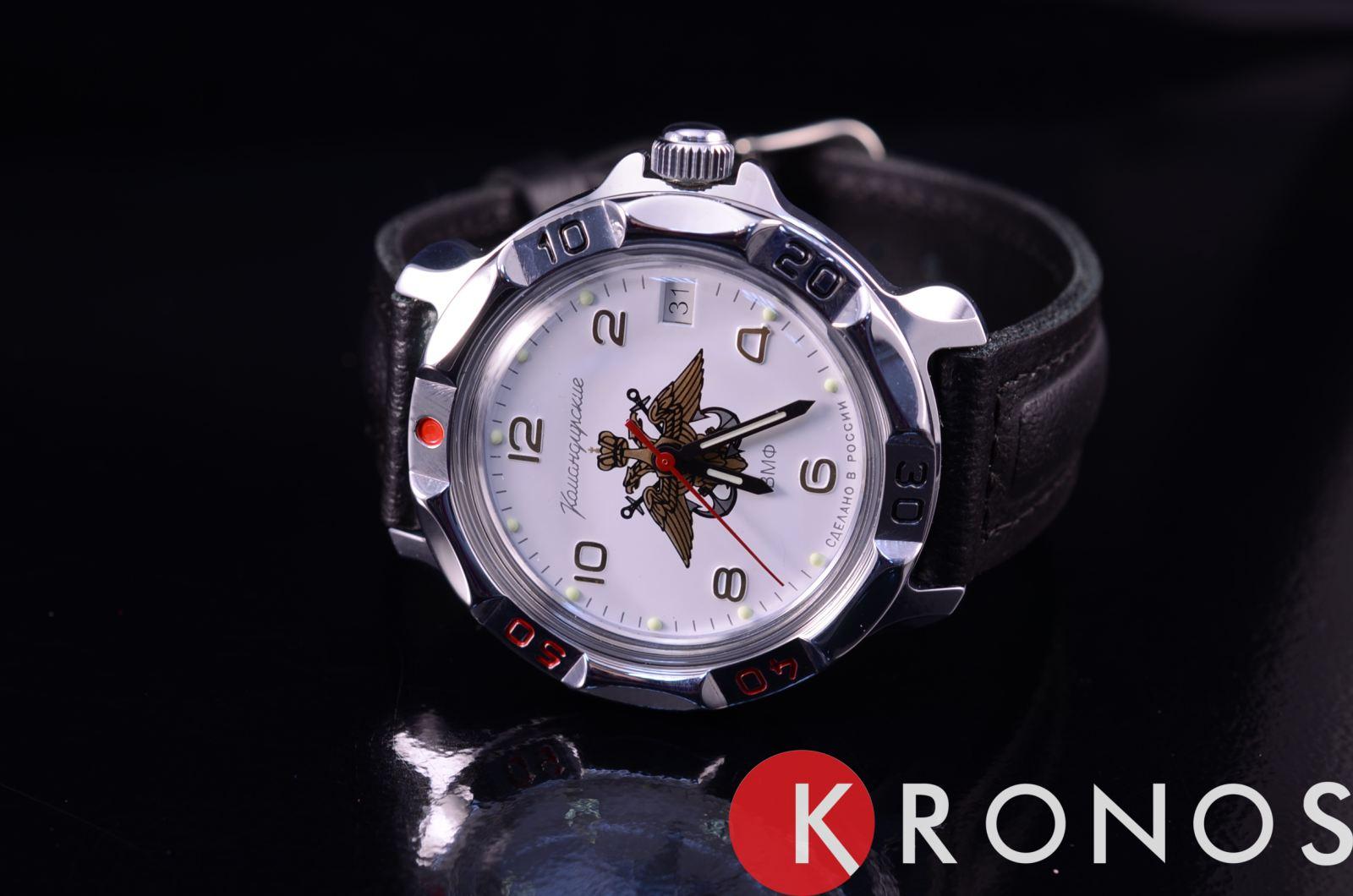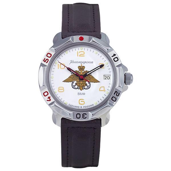 Российские механические часы. Корпус из высокопрочной стали с антикоррозийными свойствами. Ремешок из натуральной кожи черного цвета. Циферблат с символикой ВМФ. Водонепроницаемость часов составляет 3 ATM. Минеральное стекло, устойчивое к появлению царапин.