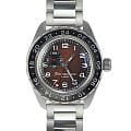 Мужские российские механические наручные часы Восток Командирские 02017А, механический механизм (автоматический калибр) с высокой точностью. Класс водозащиты: 200 метров, позволит плавать, нырять и заниматься другими водными видами спорта. Стрелки с люминесцентным покрытиемЛюминесцентное покрытиеПозволяет считывать показания времени в темноте. Производители наносят на стрелки, часовые индексы, безель или поверхность циферблата светонакопительный состав, дающий холодное свечение.. Вращающийся безельБезельВнешний ободок, закрепляющий стекло. В спортивных часах так называется поворотное кольцо с делениями на циферблате, выполняет роль таймера – замеряет отрезки времени на шкале. Неподвижный безель – элемент декора. Однонаправленно вращающийся безель на дайверских часах позволяет фиксировать моменты погружения и выныривания на поверхность. из нержавеющей стали с PVDPVDУльтратонкое покрытие наносится в технике вакуумного напыления, сочетает в себе нитрид титана особой прочности со слоем золота или оксида хрома. Несёт в себе декоративную или защитную функцию. покрытием. Дополнительная 24-часовая стрелка. Механизм калибра 24 мм с боковой секундной стрелкой. Автоподзавод с предохранительным устройством от перезаводки пружины. Частота: 19800 полуколебаний/час. Браслет с раскладной застёжкойРаскладная застёжкаТакой тип застёжки используется только на браслетах из металла. Она никогда не раскрывается полностью, происходит разделение на 2 и более частей. Раскладывающая застёжка снизит вероятность потери часов к минимуму..