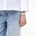 Женские кварцевые часы — это элегантный аксессуар, сочетающий в себе швейцарское качество и изысканный дизайн. Модель выполнена из нержавеющей стали марки 316L с керамической вставкой, что придаёт ей прочность и устойчивость к царапинам. Корпус имеет толщину 8,5 мм, а его размеры составляют 30 мм в диаметре. Циферблат белого цвета дополнен штриховыми метками и инкрустирован фианитами, что делает его привлекательным и выразительным. Защиту механизма обеспечивает сапфировое стеклоСапфировое стеклоПрочный и надёжный материал из кристалла сапфира синтетического происхождения, характеризующийся особой твёрдостью и устойчивостью к царапинам и повреждениям., устойчивое к повреждениям. Стальной браслет из керамики шириной 16 мм оснащён Раскладной замокРаскладной замокДанный вариант застежки используется только на часах с металлическим браслетом. Отличительная особенность такого крепления в том, что длина браслета становится универсальной и вы можете самостоятельно отрегулировать нужный вам размер – застежка просто двигается по браслету часов., обеспечивающей комфорт и надёжную фиксацию на запястье. Часы водонепроницаемы до 30 метров (, что позволяет использовать их при мытье рук или под лёгким дождём. Гарантия 2 года подтверждается гарантийным талоном, а срок действия начинается с момента передачи товара потребителю. Эти часы станут универсальным аксессуаром для тех, кто ценит сочетание стиля, функциональности и безупречного качества — идеальный выбор для повседневной носки и торжественных случаев.