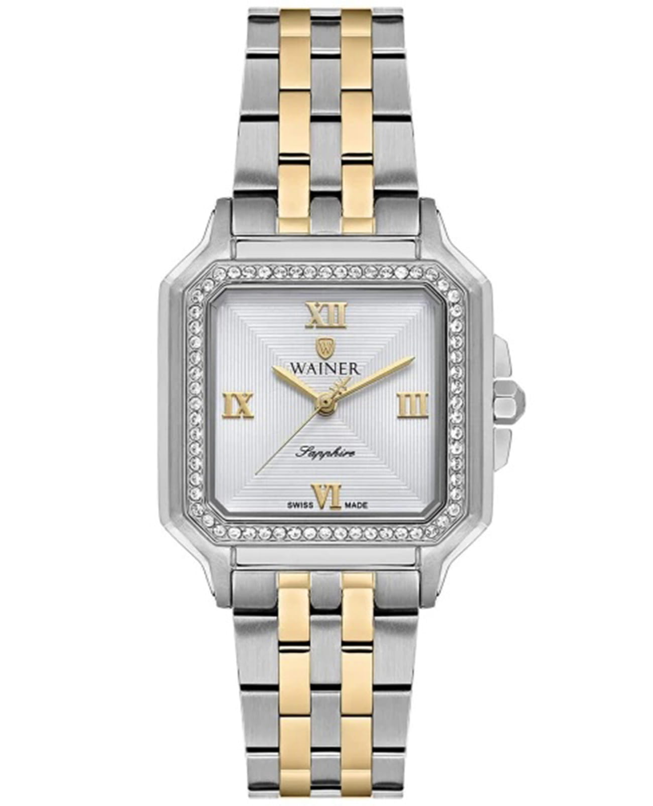 Женские кварцевые часы Wainer WA.18080-E — это изысканный аксессуар, воплощающий швейцарское качество и элегантность. Модель выполнена в квадратной форме из стали 316L, а её корпус украшен люминесцентным покрытиемЛюминесцентное покрытиеПозволяет считывать показания времени в темноте. Производители наносят на стрелки, часовые индексы, безель или поверхность циферблата светонакопительный состав, дающий холодное свечение. и инкрустирован кристаллами, что придаёт ему роскошный внешний вид. Циферблат серебристого цвета гильоширован и дополнен римскими цифрами, а секундная стрелка на конце декорирована буквой W, подчёркивая внимание к деталям. Защиту механизма обеспечивает сапфировое стеклоСапфировое стеклоПрочный и надёжный материал из кристалла сапфира синтетического происхождения, характеризующийся особой твёрдостью и устойчивостью к царапинам и повреждениям., устойчивое к повреждениям. Гранёная заводная головка с защитой оснащена фирменным логотипом, добавляя модели индивидуальности. Браслет из стали 316L с частичным PVD-покрытиемPVDУльтратонкое покрытие наносится в технике вакуумного напыления, сочетает в себе нитрид титана особой прочности со слоем золота или оксида хрома. Несёт в себе декоративную или защитную функцию. шириной 16 мм оснащён Раскладная застёжкаРаскладная застёжкаТакой тип застёжки используется только на браслетах из металла. Она никогда не раскрывается полностью, происходит разделение на 2 и более частей. Раскладывающая застёжка снизит вероятность потери часов к минимуму., обеспечивающей комфорт и надёжную фиксацию на запястье. Водонепроницаемость позволяет использовать модель при мытье рук или под лёгким дождём. Механизм калибра Ronda 763 гарантирует точность хода и надёжность. Эти часы станут универсальным аксессуаром для тех, кто ценит сочетание стиля, функциональности и швейцарского мастерства — идеальный выбор для повседневной носки и торжественных случаев.